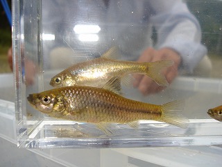 ウシモツゴはコイ科の淡水魚で、国、愛知県共に絶滅危惧Ⅰ-Aです。ちなみにⅠ-Aはに佐渡のトキも同じランクで、生息している生物の中で最も絶滅に近い種とされています。